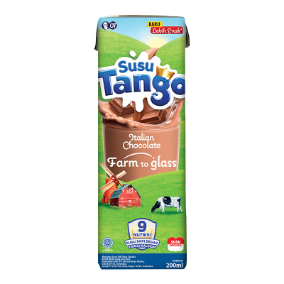 Tango Drink Velluto Susu UHT Italian Chocolate 200 ml adalah produk susu cair UHT persembahan dari Tango. Setiap tetes dalam satu kemasan Tango drink velluto terbuat dari susu sapi segar berkualitas tinggi dan dipadukan dengan bubuk cokelat premium Italia. Selain itu, juga melalui proses UHT dengan teknologi modern untuk dapat menyajikan minuman susu cair yang lebih steril dan higienis. Dilengkapi dengan kandungan Biotin, Fosfor, Kalsium, Omega 6, Omega 3 dan 7 vitamin. Kini telah tersedia dalam kemasan tetrapak 200 ml yang praktis, sehingga mudah untuk dinikmati kapanpun dan dimanapun Anda inginkan. Rasakan perpaduan nikmat susu dan cokelat dengan resep asli Italia hanya bersama Tango Drink Velluto Susu UHT Italian Chocolate 200 ml.